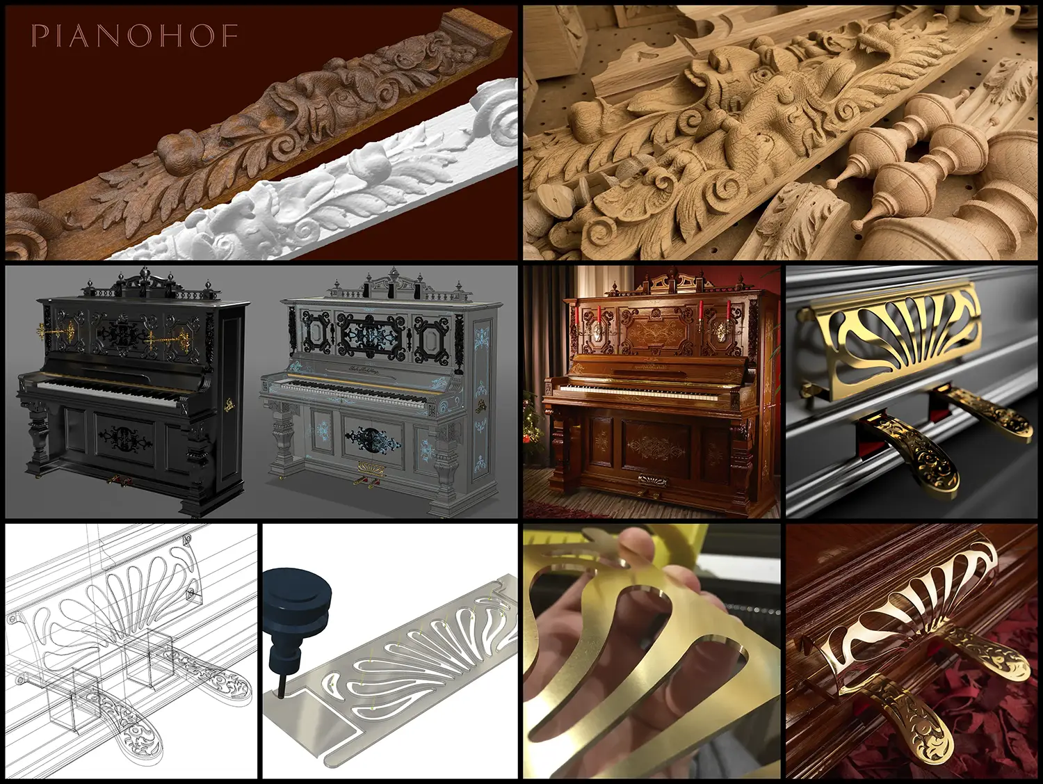 Unsere Werkstatt restauriert und bewahrt die Schönheit und den Wert von Klavieren und Flügeln vergangener Zeiten. Aber wir gehen noch einen Schritt weiter und helfen Ihnen, die fehlenden Holzteile zu rekonstruieren und zu restaurieren, egal ob es sich um einfache Formen oder aufwendige Schnitzereien handelt.