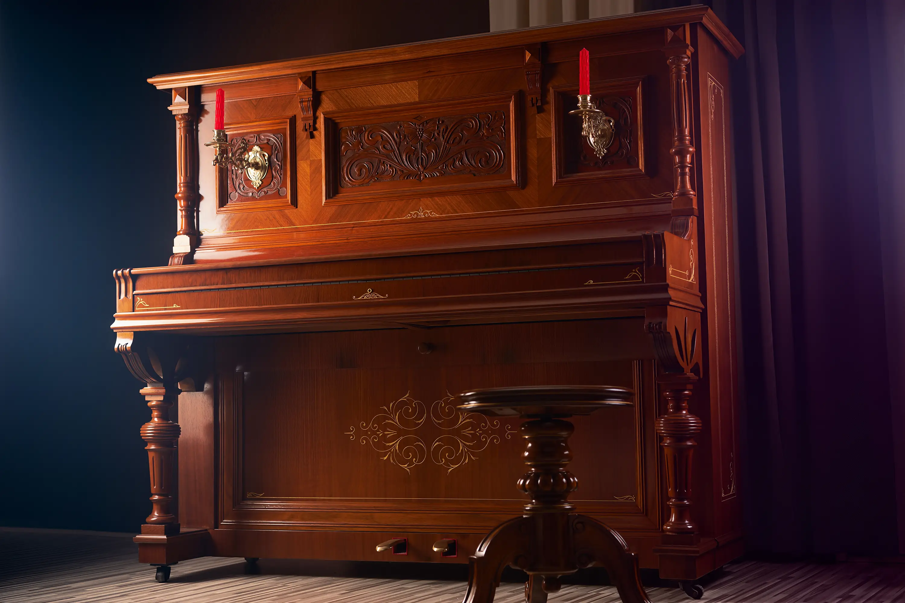 Dieses historische Ed. Seiler Klavier stammt aus der Zeit um 1906. Die Seriennummer 36698. Das Instrument wurde technisch und optisch umfassend überarbeitet. Ziel war ein stabil stimmbares Instrument mit ausgewogenem Klang, sauberer Dämpfung und sehr angenehmem Spielgefühl, kombiniert mit einer klassischen Optik in Nussbaum und Schellack.